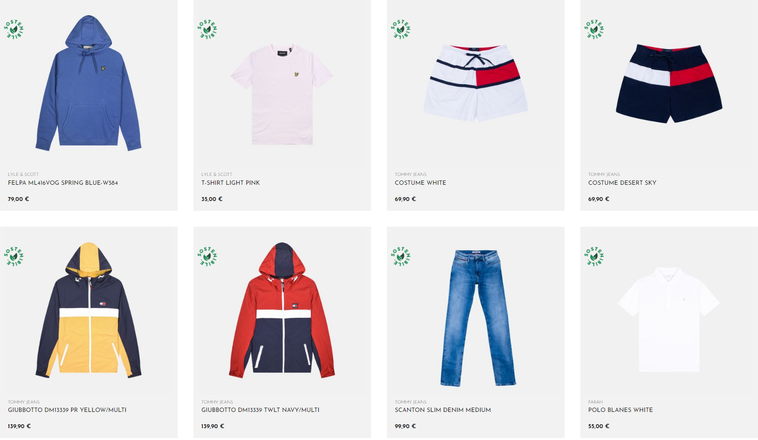 La nostra selezione di capi sostenibili è composta da jeans, t-shirt- felpe, costumi