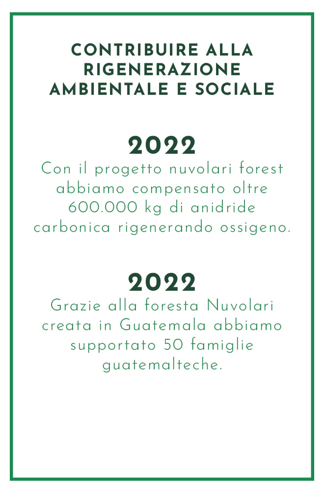 Il nostro impegno parte dalla volontà di orientarci verso una compensazione delle emissioni prodotte non soltanto in una ottica di riduzione ma di vera e propria rigenerazione.
