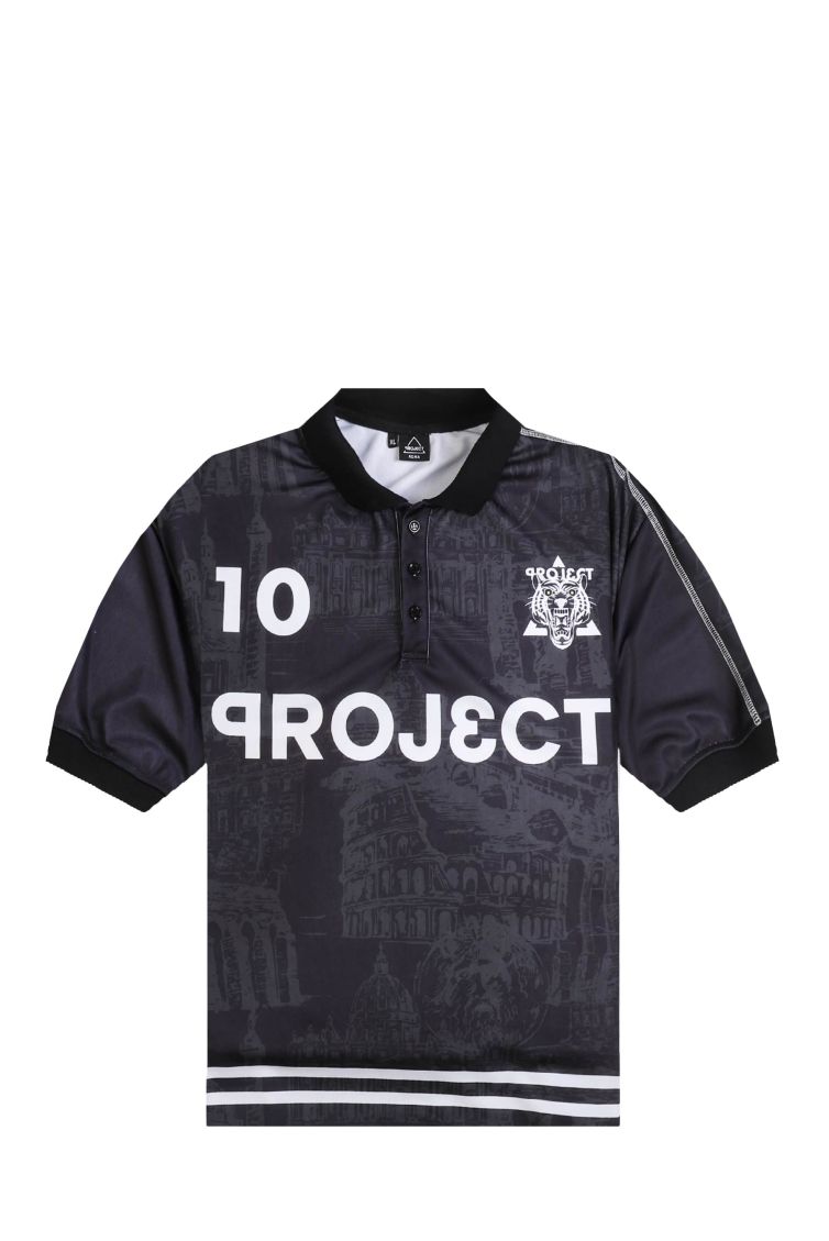 La T-shirt Proj3ct, ispirata allo stile delle magliette da calcio, presenta un colletto che aggiunge un tocco sportivo e dinamico al design. Il taglio e i dettagli richiamano il look classico del mondo del calcio, rendendola perfetta per un outfit casual e ricercato. Un capo che combina comfort e stile sportivo in modo unico.